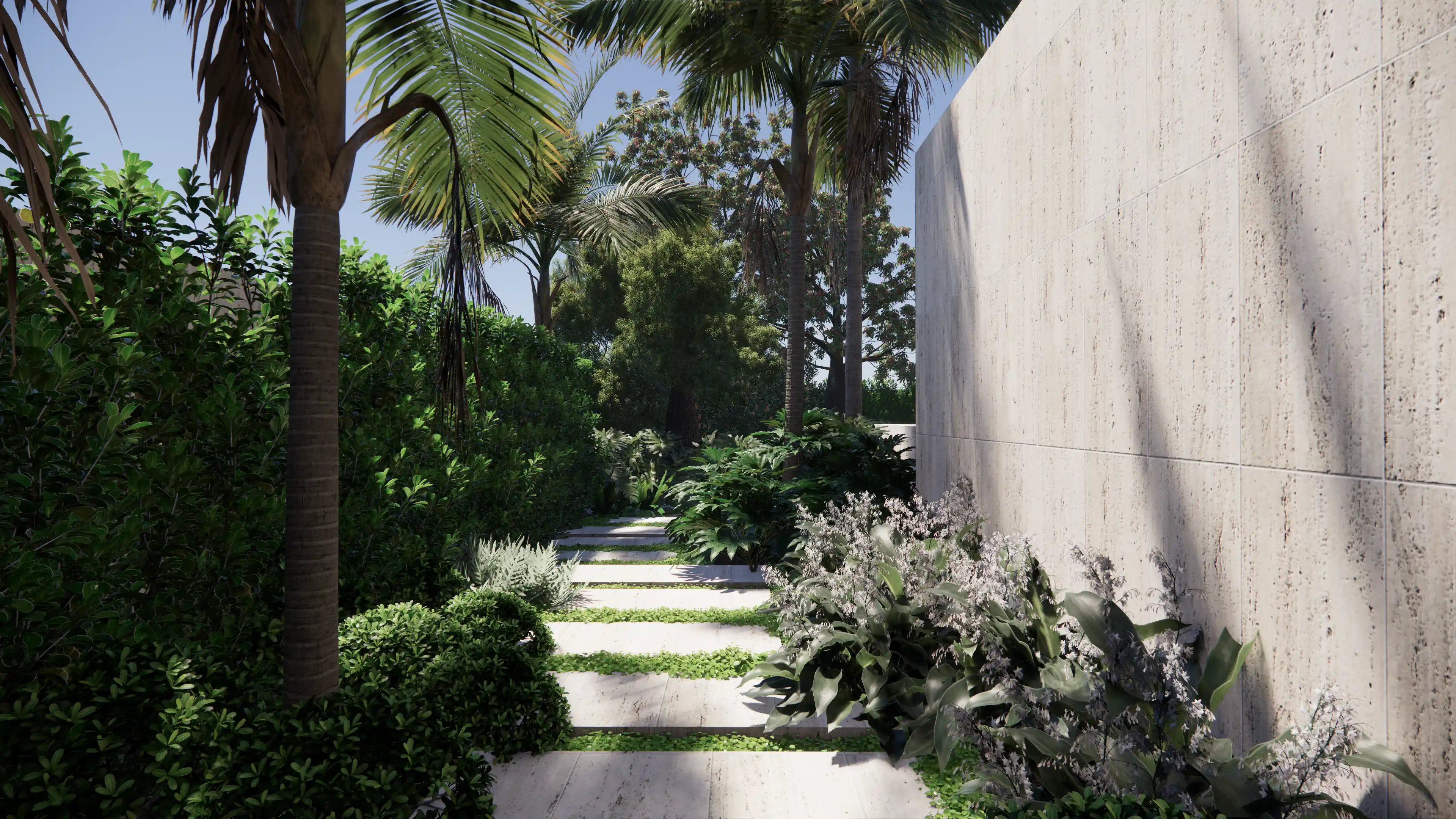 Working closely with the client, the initial tropical brief was thoughtfully adapted to respond to the project’s surrounding context. By guiding the brief toward a more nuanced planting approach, the garden was shaped to complement the scale of the home while integrating with its environment.