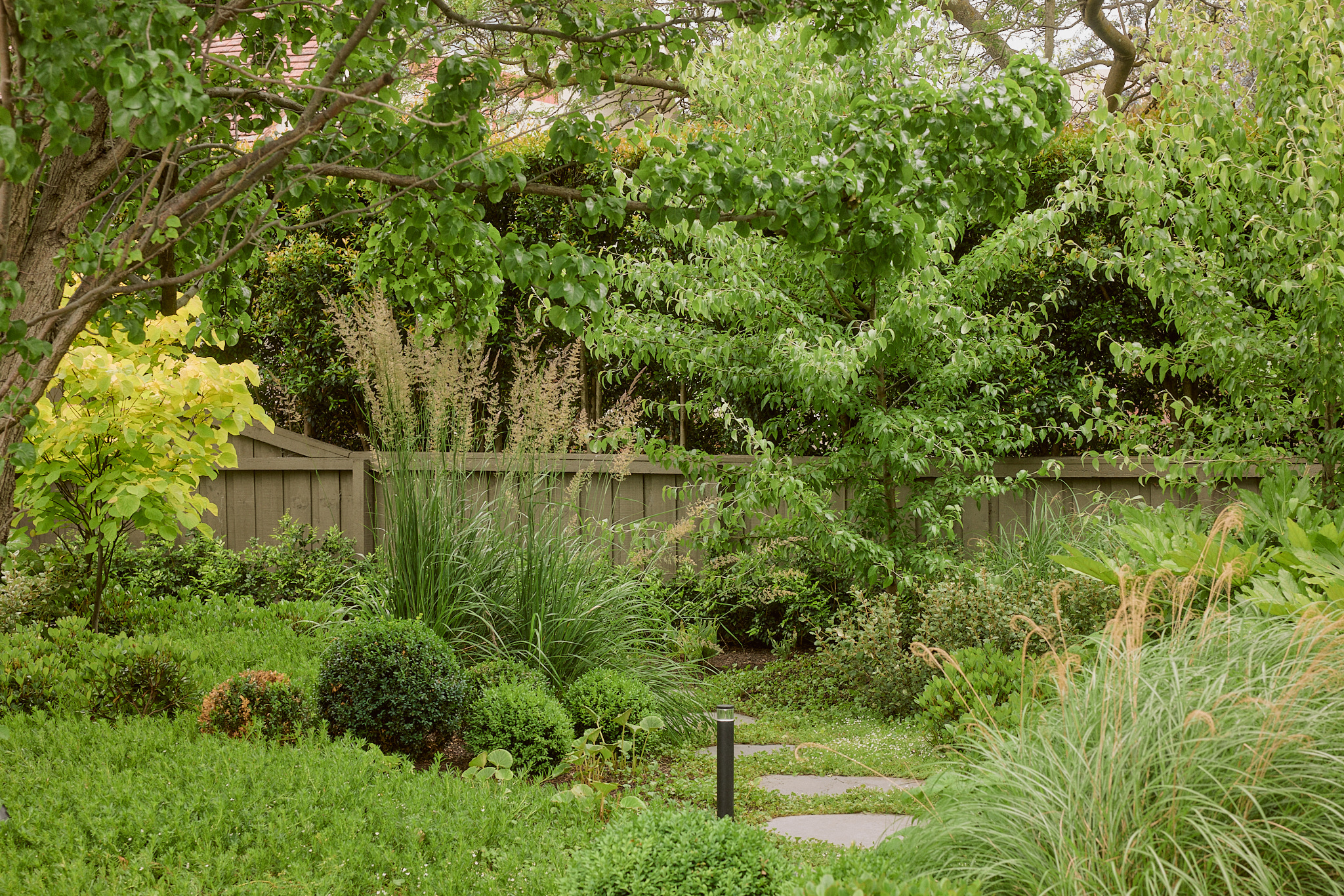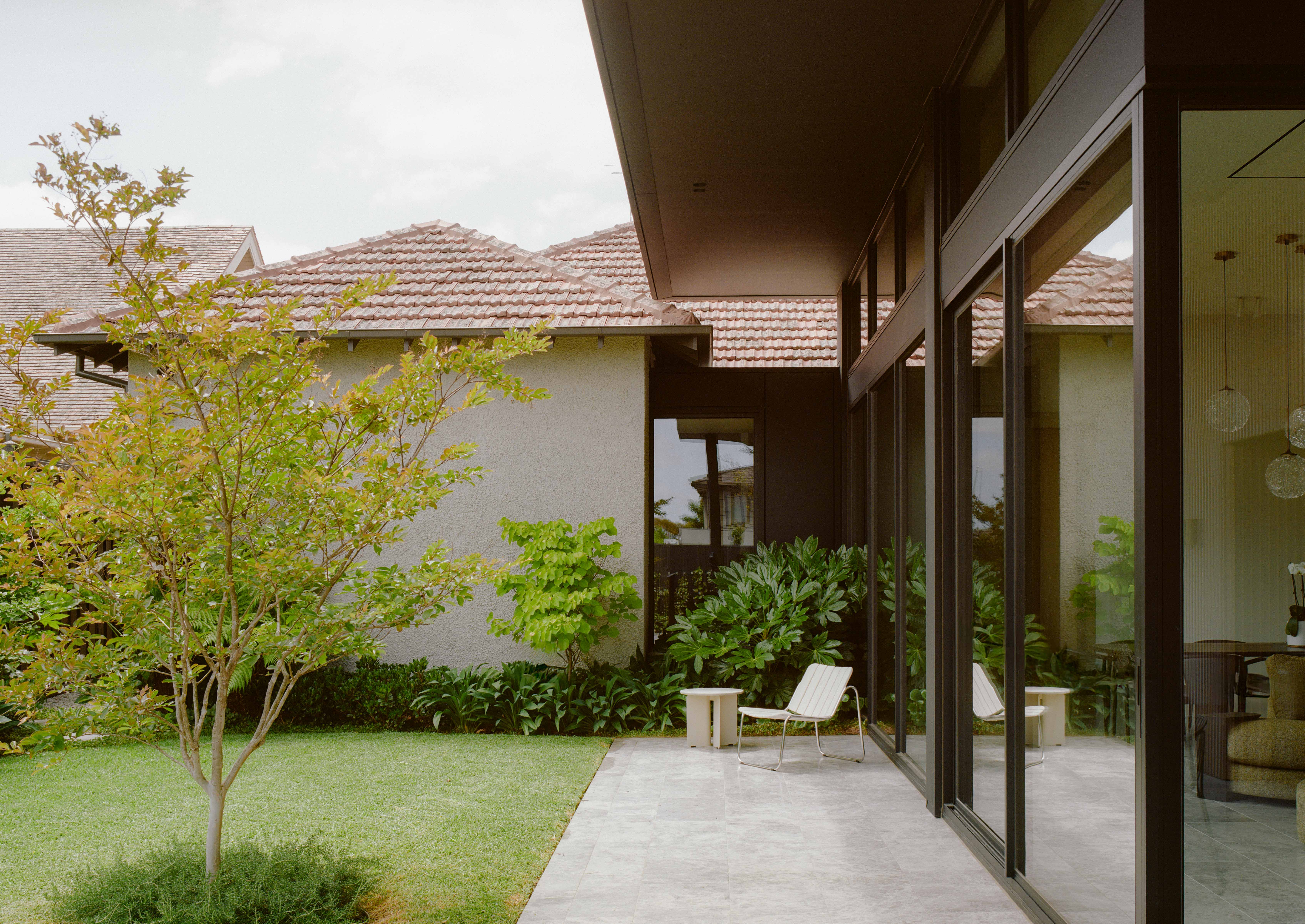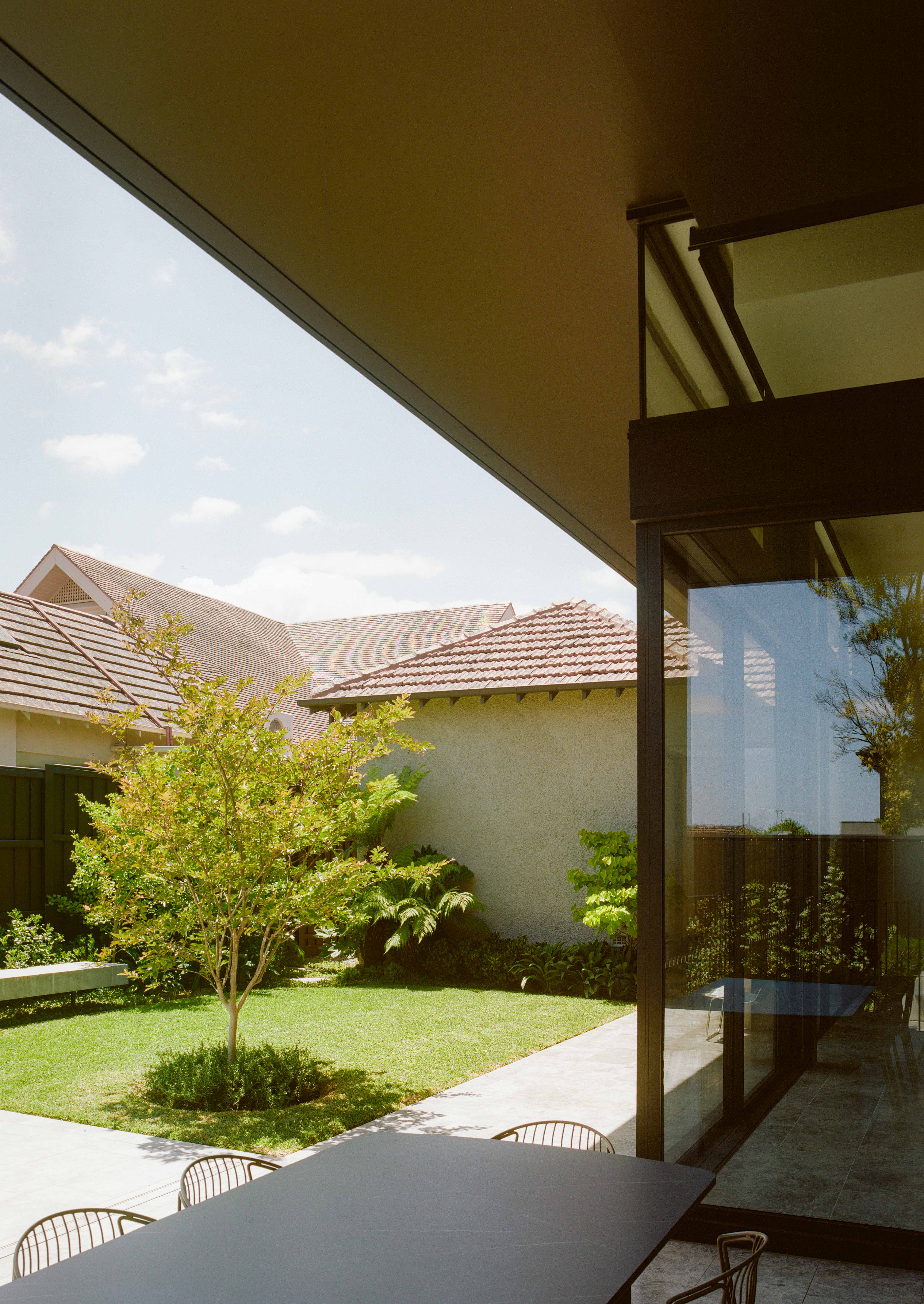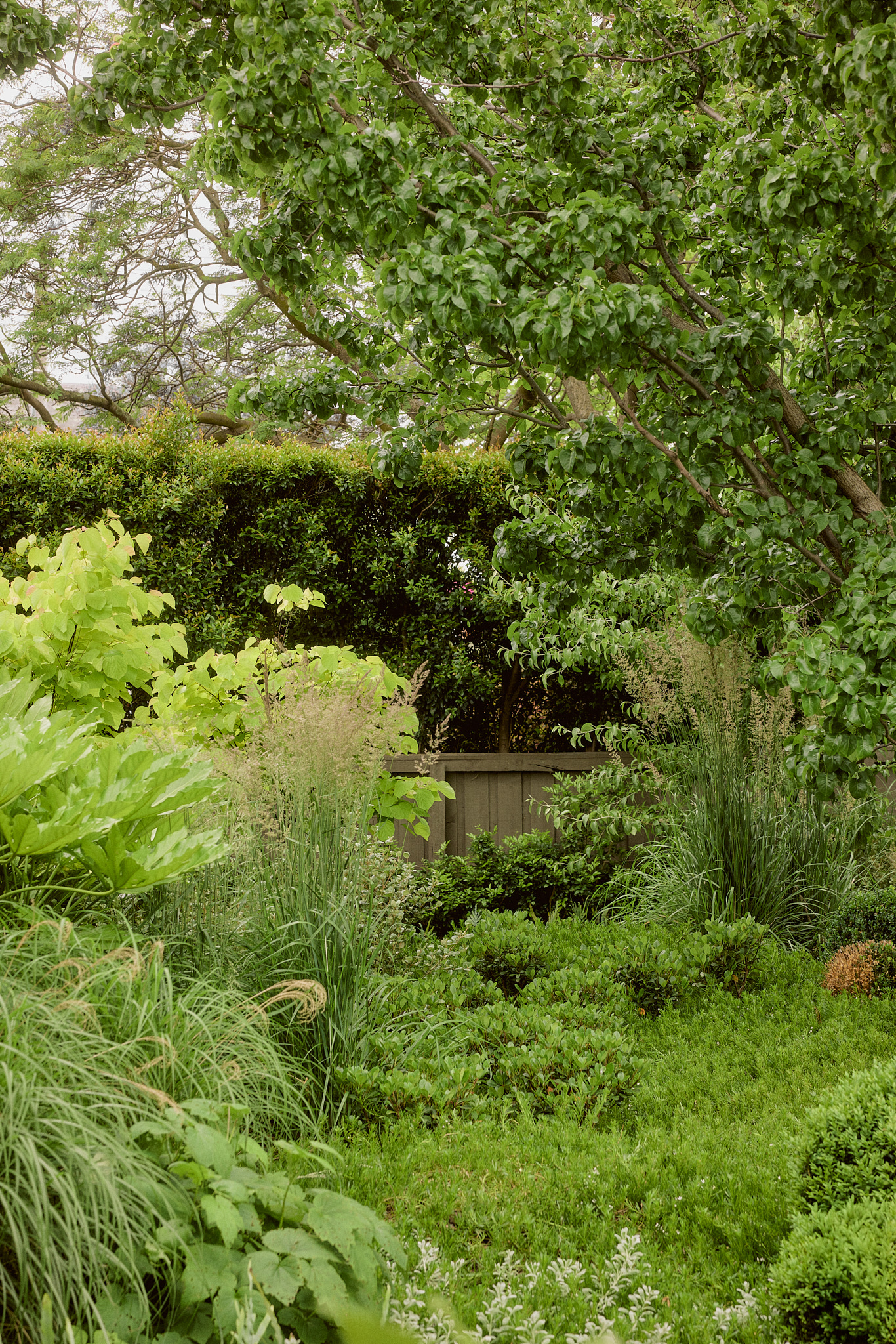 The garden acts as a key contributor to the character of this property while enhancing its street presence and sense of arrival. The planting strategy centers on layered greens, leaf structure, and a restrained material palette to establish a sense of enclosure and softness throughout the site. An existing Pyrus tree forms the heart of the composition, its established canopy retained and celebrated. A trio of advanced Brachychiton rupestris (Queensland Bottle trees) were introduced to balance the Pyrus and frame the dwelling.