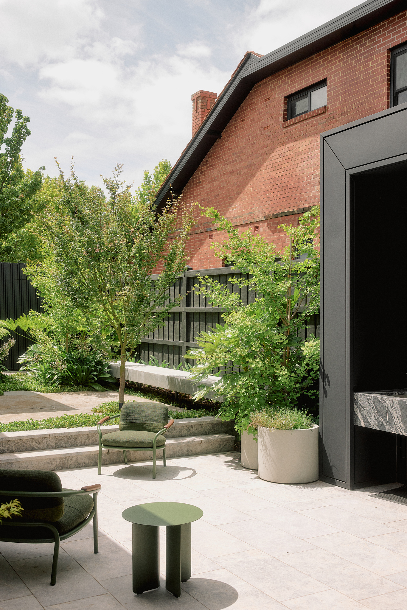 This expressive garden in Essendon responds to a suburban setting, where attentive restoration of the original dwellings facade and considered architectural detailing informed the landscape approach. The brief was to create a garden that felt resolved and timeless, a garden that would sit comfortably alongside the home while offering a series of calm, functional outdoor spaces for daily use and quiet retreat.
